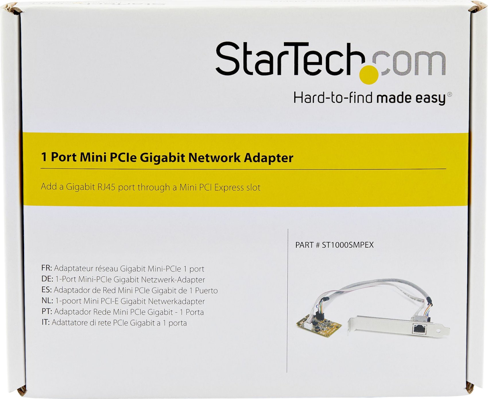 StarTech.com Adaptador Tarjeta de Red NIC Mini PCI Express PCI-e PCIe 1 Puerto Gigabit Ethernet RJ45. Interno. Tecnología de conectividad: Alámbrico, Interfaz de host: Mini PCI Express, Interfaz: Ethernet. Rango máximo de transferencia de datos: 1000 Mbit/s