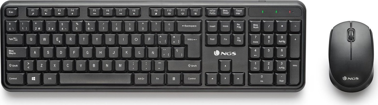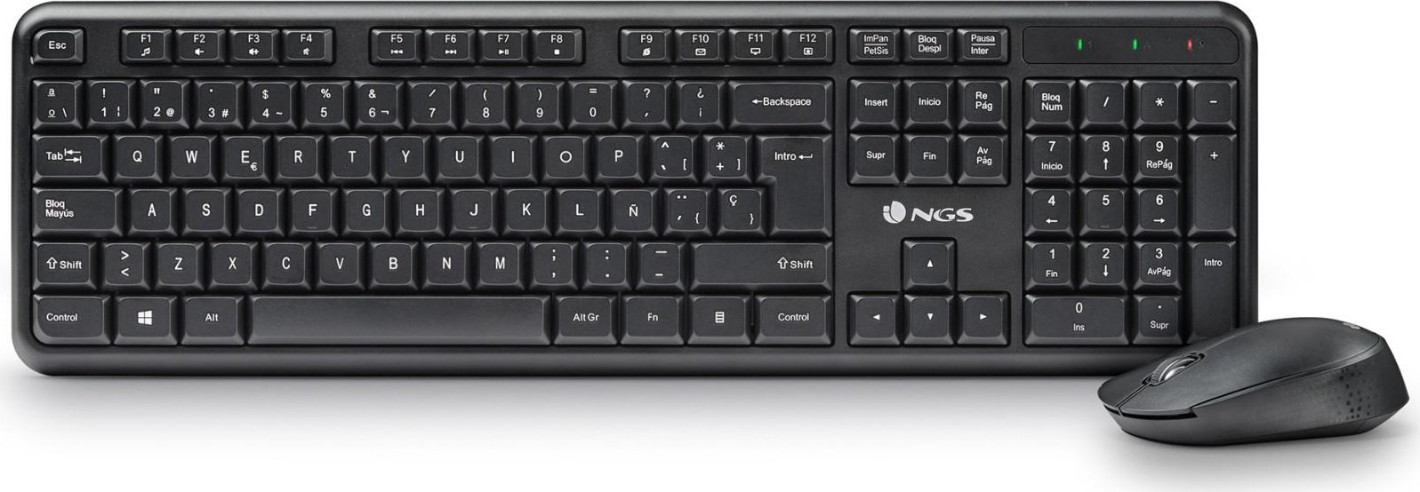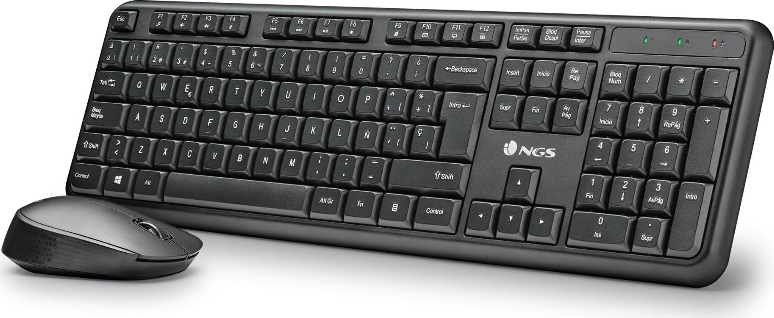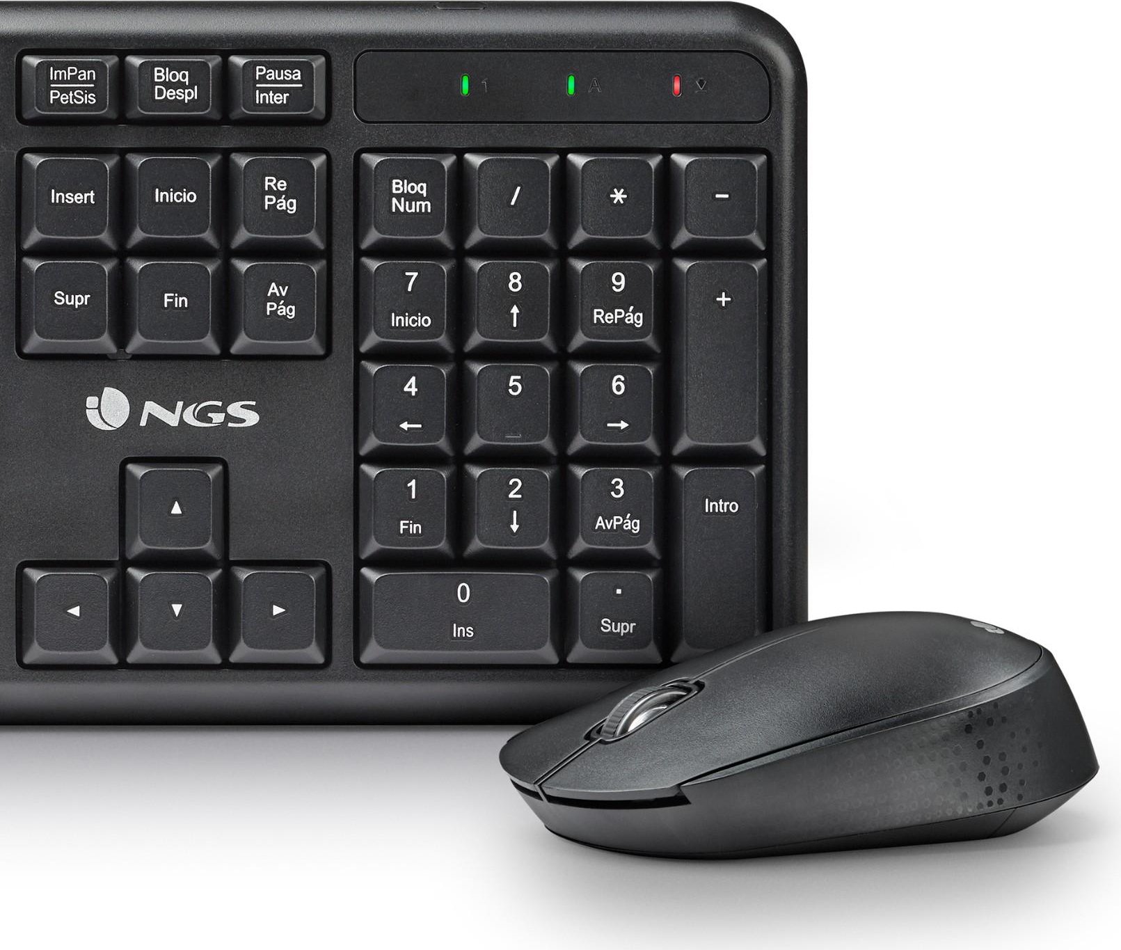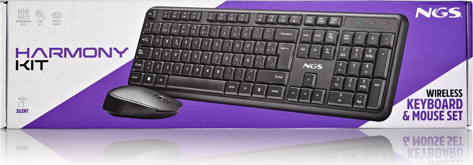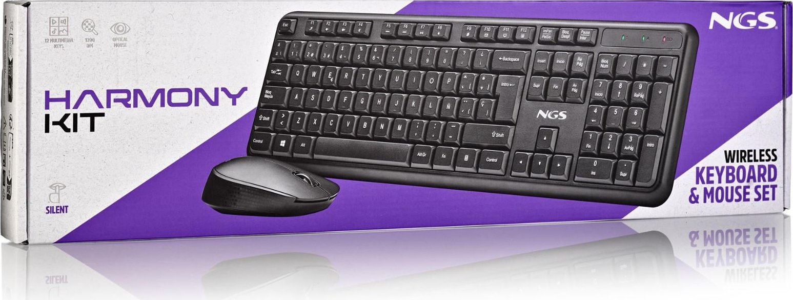 NGS HARMONY KIT (QUERTY, ES). Formato del teclado: Completo (100%). Estilo de teclado: Derecho. Tecnología de conectividad: Inalámbrico, Interfaz del dispositivo: RF inalámbrico, Diseño de teclado: QWERTY, Uso recomendado: Universal. Color del producto: Negro. Ratón incluido