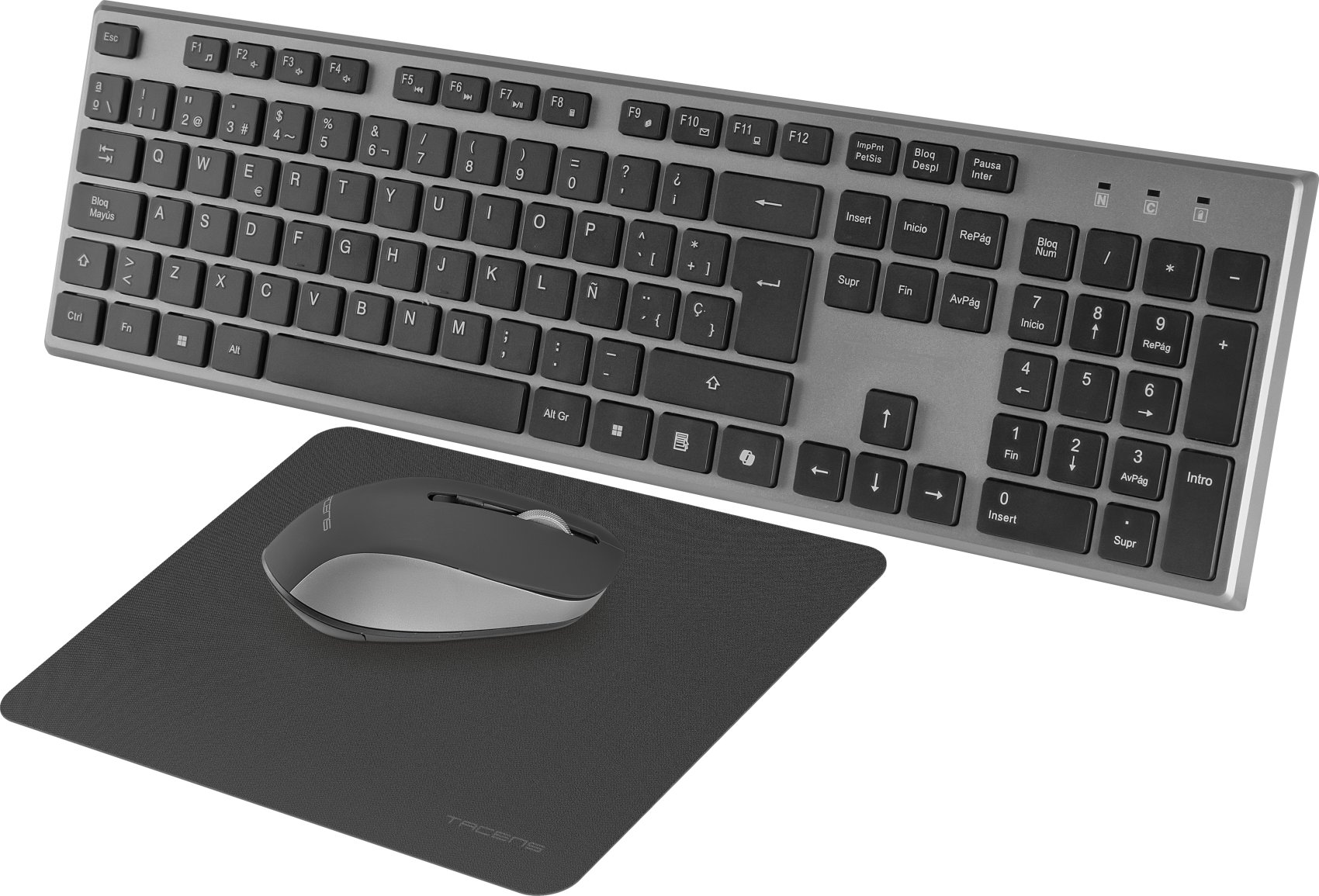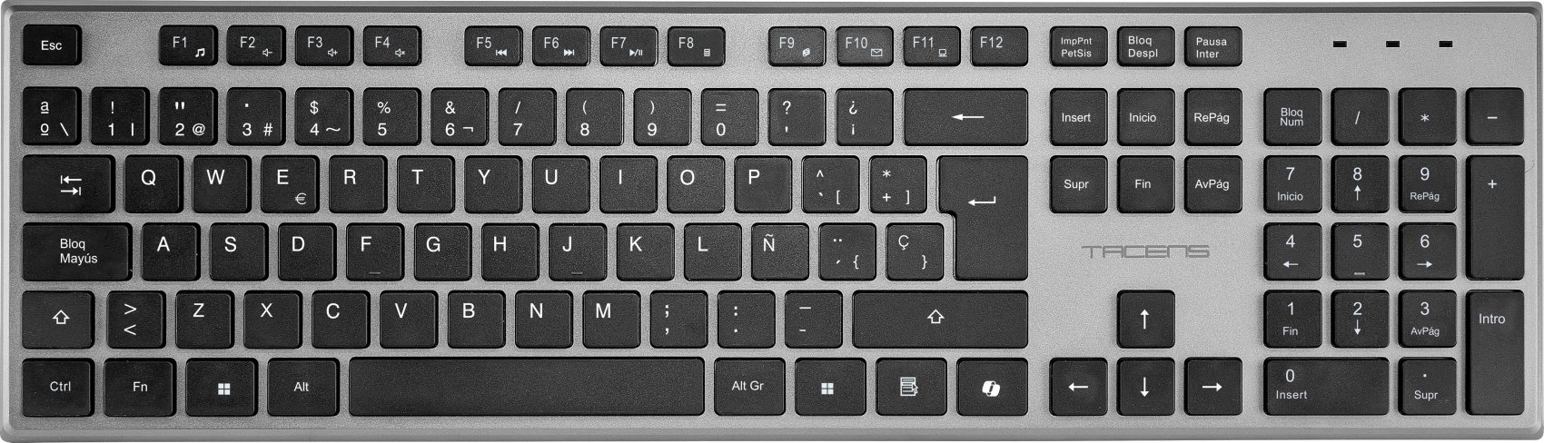 Tacens 6ZENITHES. Formato del teclado: Completo (100%). Estilo de teclado: Derecho. Tecnología de conectividad: Inalámbrico, Interfaz del dispositivo: RF inalámbrico, Interruptor del teclado: Interruptor de membrana, Diseño de teclado: QWERTY, Uso recomendado: Hogar / Oficina. Color del producto: Gris. Ratón incluido