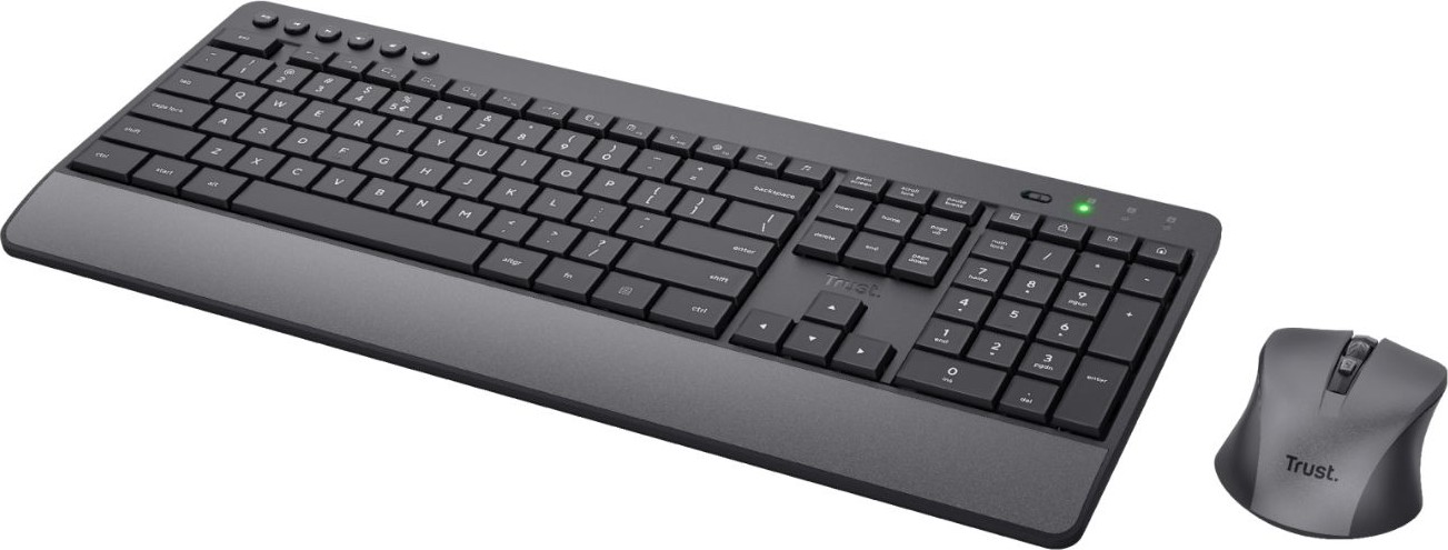 Trust Trezo. Formato del teclado: Completo (100%). Estilo de teclado: Derecho. Tecnología de conectividad: Inalámbrico, Interfaz del dispositivo: RF inalámbrico, Interruptor del teclado: Interruptor de membrana, Diseño de teclado: QWERTY, Uso recomendado: Universal. Color del producto: Negro. Ratón incluido