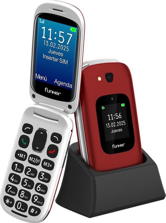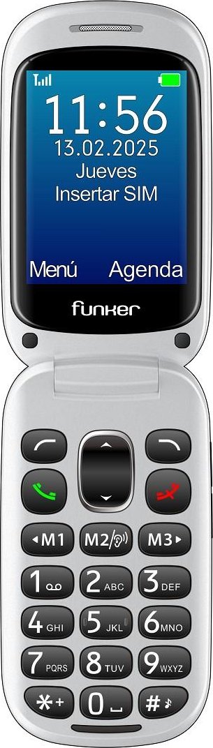 El Funker E350 Max Audio 3 Plus es un teléfono móvil plegable con conectividad 4G, diseñado para personas mayores que requieren accesibilidad avanzada. Incorpora una pantalla principal de 2,8” y una pantalla externa a color de 1,8”, que permite ver notificaciones y llamadas sin abrir el teléfono. Dispone de teclado físico con teclas grandes, sistema operativo simplificado y audio de alta potencia compatible con audífonos (HAC). Cuenta con botón SOS, 3 teclas de marcación rápida, fotocontactos personalizables y funciones CARE PRO. También incluye configuración remota, cámara, radio FM, linterna y soporte para cordón.