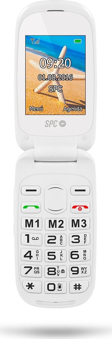 El teléfono móvil SPC Harmony de color blanco es un teléfono móvil sin complicaciones, con números y letras grandes. Dual SIM, linterna, 3 memorias directas, 5 números SOS y mensajes SOS, con botón directo de llamada al 112, radio FM y cámara con flash.