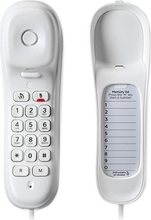 Teléfono simple y compacto, tipo góndolaEl teléfono Motorola CT50 es sencillo y compacto de solo 1 pieza, encaja perfectamente en oficinas o en casas. Incorpora un indicador visual de llamadas y control de volumen del timbre lo que significa que no perderá ninguna llamada. Cuenta con 10 memorias numéricas para una llamada fácil y rápida, y también puede montarse en la pared.