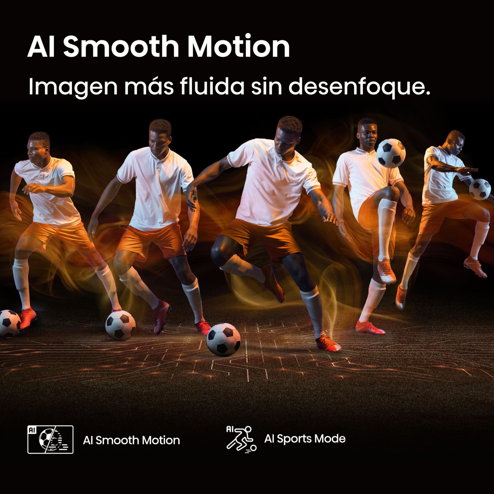 Imagen más fluida sin desenfoque. Experimenta imágenes fluidas y realistas con funciones avanzadas como MEMC (Estimación de Movimiento, Compensación de Movimiento) y Reducción de Ruido 3D, integradas en un panel altamente sensible. Con la tecnología AI Smooth Motion, el molesto desenfoque de movimiento queda en el pasado. Ya sea en deportes de ritmo rápido o en juegos llenos de acción, cada movimiento y giro repentino se representa con una claridad nítida, asegurando que las escenas dinámicas aparezcan fluidas y fieles a la realidad.