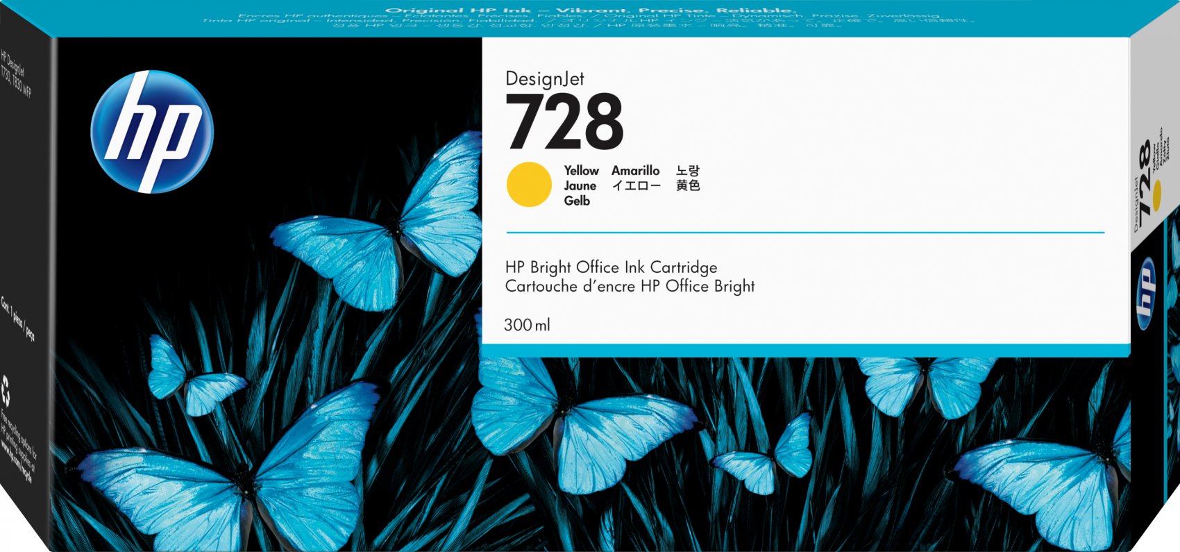 Cartucho de tinta DesignJet HP 728 amarillo de 300 mlCompatible: HP DesignJet T730, T830