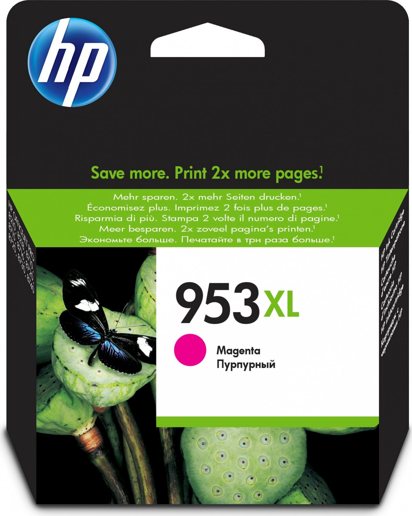 HP Cartucho de tinta Original 953XL de alto rendimiento magenta. Tipo de tinta de color: Tinta a base de pigmentos, Tipo de cartucho de tinta: Alto rendimiento (XL), Rendimiento de impresión de página con tinta de color: 1450 páginas, Volumen de tinta de color: 18,5 ml, Colores de impresión: Magenta, Cantidad por paquete: 1 pieza(s)