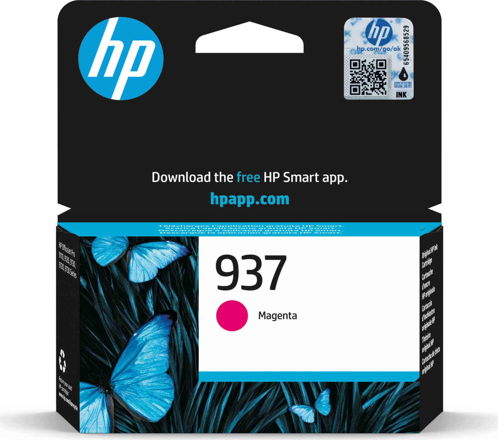 HP Cartucho de Tinta Original 937 magenta. Tipo de cartucho de tinta: Rendimiento estándar, Tipo de suministro: Pack individual, Rendimiento de impresión de página con tinta de color: 800 páginas, Colores de impresión: Magenta, Cantidad por paquete: 1 pieza(s)