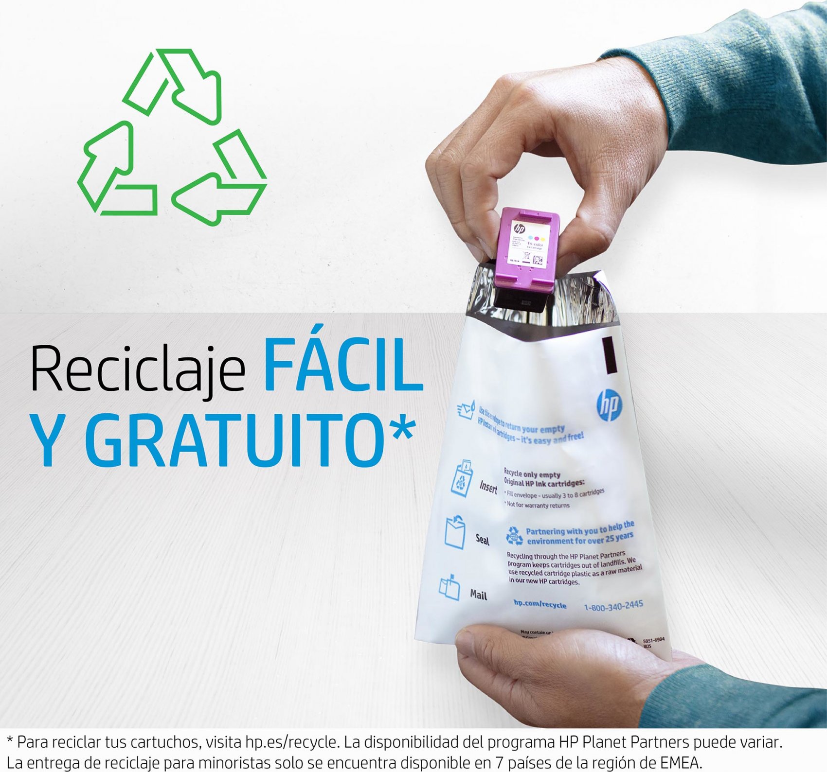 Imprima de forma segura: los cartuchos Originales HP han sido diseñados de manera respetuosa con el entorno para un reciclaje sencillo y un menor número de residuos.[4]