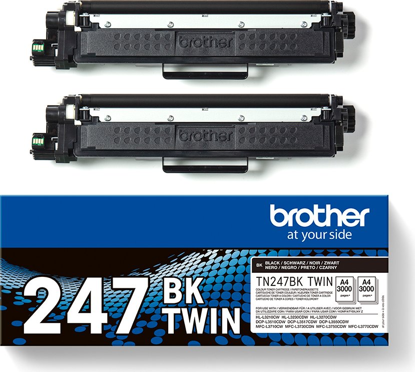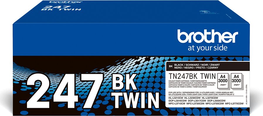 Diseñado específicamente para tu impresora, el pack de tóner original Brother TN247BKTWIN incluye 2 cartuchos de tóner negro, cada cartucho con una duración de hasta 3.000 páginas.