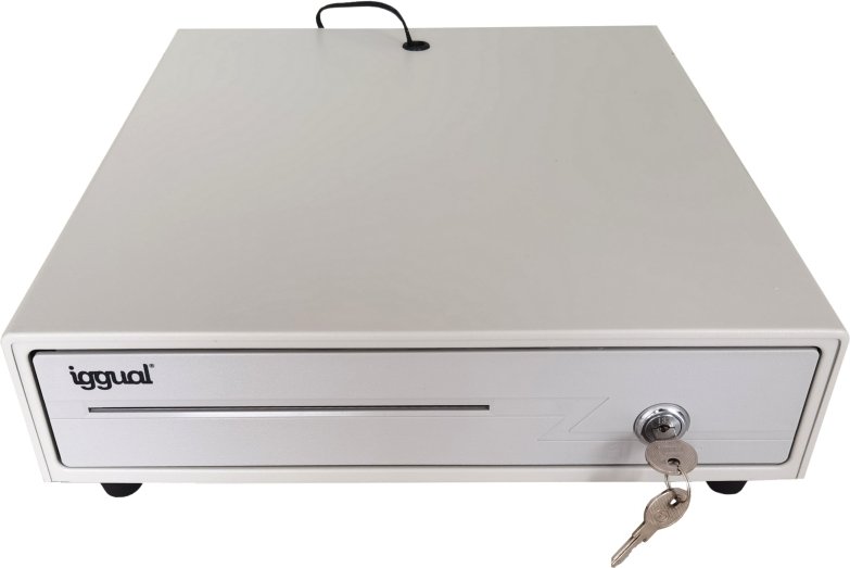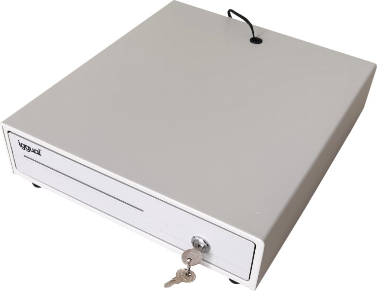 iggual IRON-10W. Tipo de producto: Cajón de efectivo electrónico, Material de la carcasa: Metal, Color del producto: Blanco. Ancho: 380 mm, Profundidad: 335 mm, Altura: 80 mm. Número de llaves incluidas: 2 pieza(s)