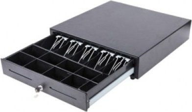 - Apertura automática: Con conexión RJ-11 (para impresora de tickets) - Apertura manual: Con llave - Compartimentos para monedas: 8 - Compartimentos para billetes: 5 - Dimensiones: 42 x 40,5 x 11,5 cm - Llave: Para cierre de seguridad - Otros: Rendija frontal para cheques o documentos sin necesidad de apertura - Color: Negro - Incluye: dos llaves y cable RJ11