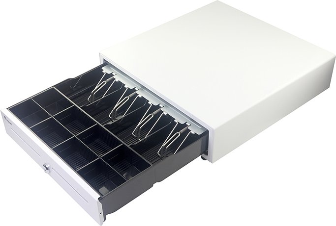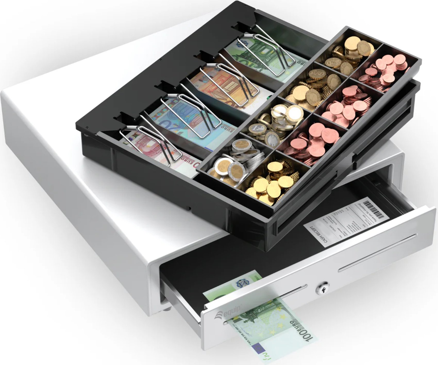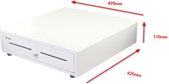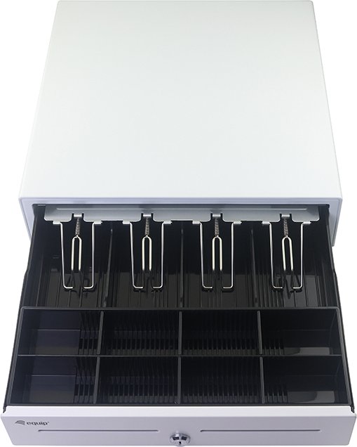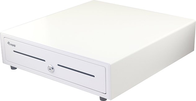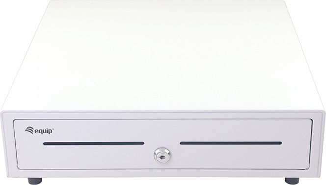 Equip 351011. Tipo de producto: Cajón de efectivo automático y manual, Material de la carcasa: Metal, Color del producto: Blanco. Ancho: 420 mm, Profundidad: 405 mm, Altura: 110 mm. Número de llaves incluidas: 2 pieza(s). Cantidad por caja: 1 pieza(s), Peso del envase completo: 6,5 kg, Longitud de la caja: 450 mm