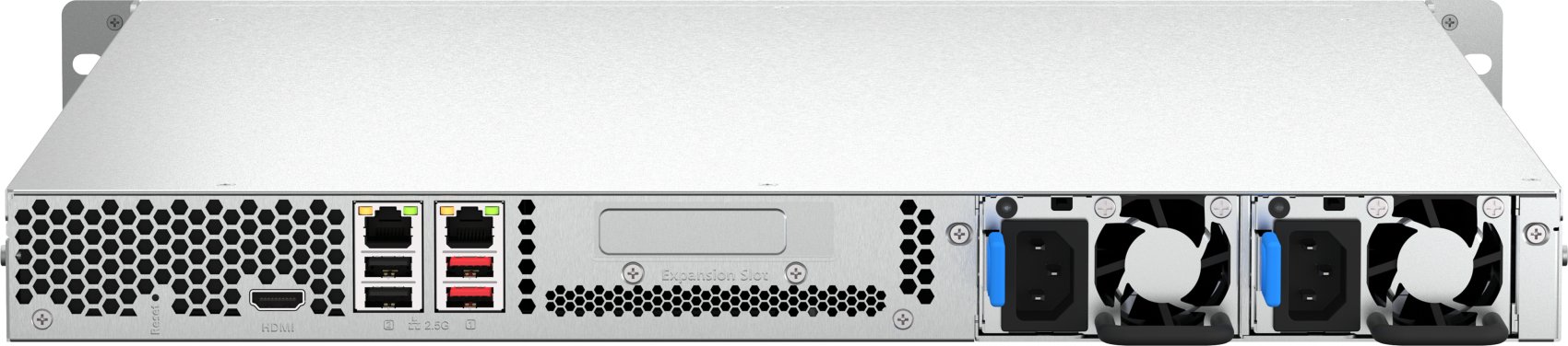El TS-464U-RP incluye dos puertos LAN RJ45 a 2,5GbE (2,5G/1G/100M) que le permiten usar los cables CAT5e existentes para mejorar las velocidades de red de 1 Gigabit a 2,5 Gigabit. Los dos puertos de 2,5GbE también admiten el enlace troncal de puertos para velocidades de transmisión de hasta 5 Gbps, lo que mejora la eficacia de las aplicaciones empresariales que requieren un alto ancho de banda, como las transferencias de archivos grandes, las copias de seguridad/restauraciones rápidas y la edición y la transferencia multimedia.