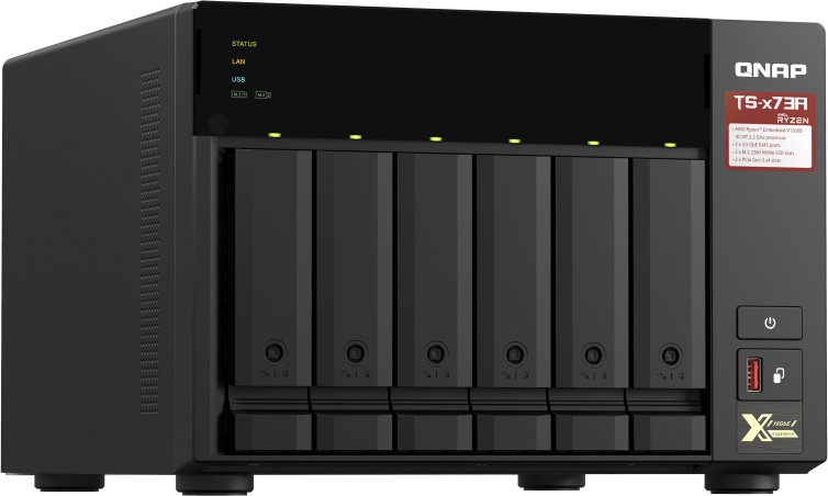 QNAP TS-H1277AXU-RP. Tipo: NAS. Tipo de chasis: Bastidor (2U). Clase del dispositivo: Grandes empresas. Familia de procesador: AMD Ryzen™ 7. Memoria interna: 32 GB, Tipo de memoria interna: DDR5. Capacidad de almacenamiento total instalado: 168 TB, Tipo de unidades de almacenamiento instaladas: Unidad de disco duro. Sistema operativo instalado: QuTS hero