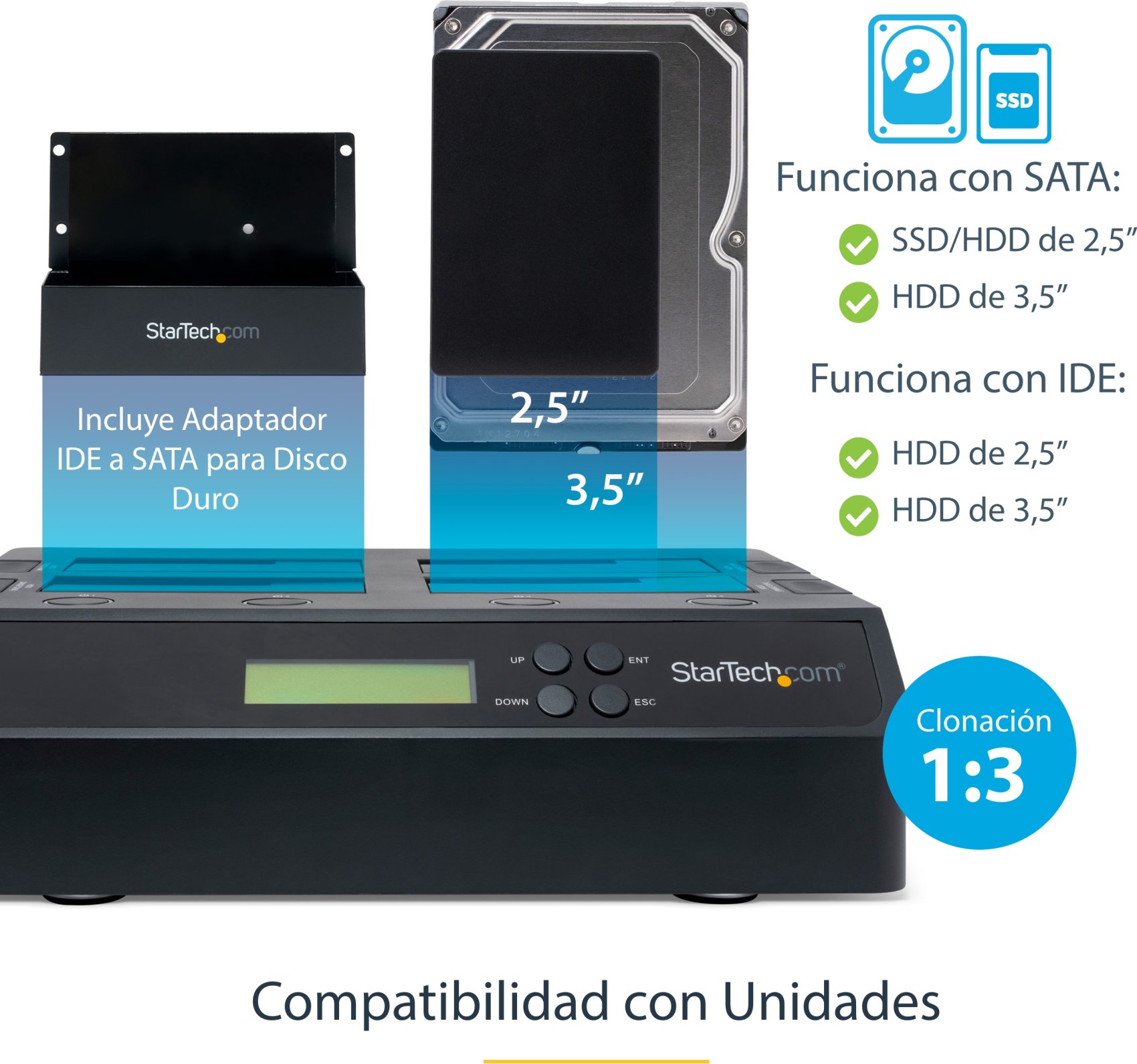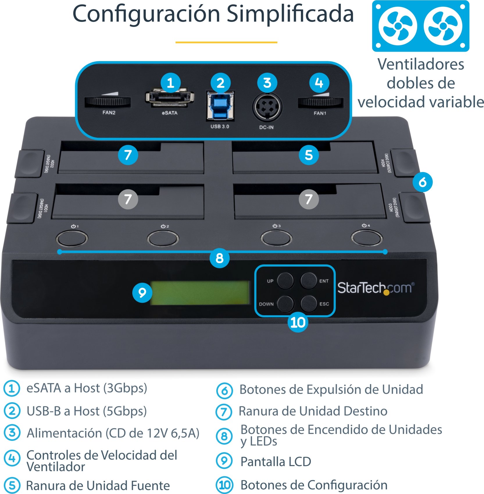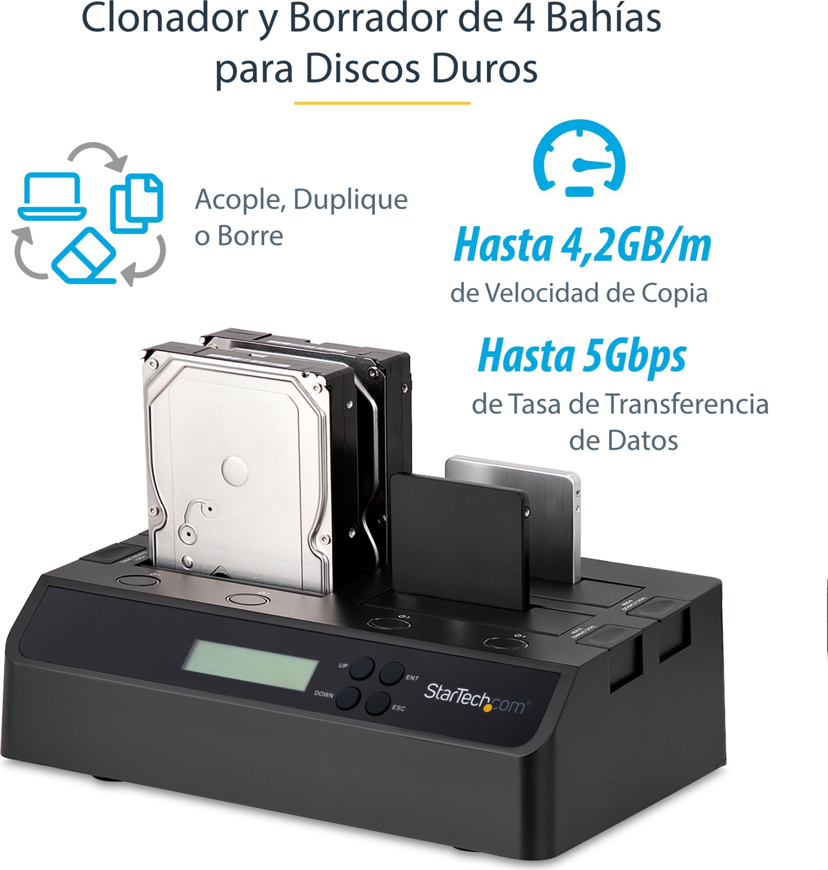 - Clonador Borrador Autónomo USB 3.0 / eSATA a SATA de 4 Bahías para Discos Duros y SSDs 1:3 - Docking Station - Sanitizador