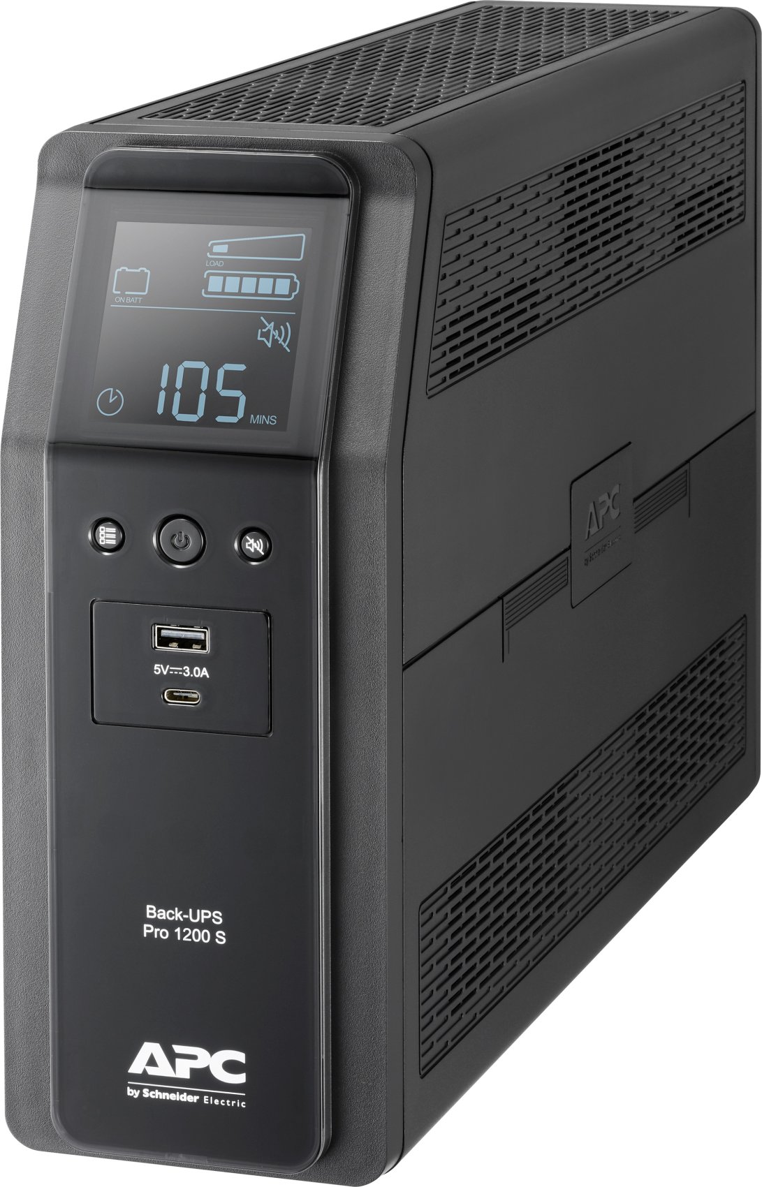 APC BACK UPS PRO BR 1200VA. Topología UPS: Línea interactiva, Capacidad de potencia de salida (VA): 1,2 kVA, Potencia de salida: 720 W. Tipo de salida AC: C13 acoplador, Cantidad de salidas AC: 8 salidas AC. Factor de forma: Torre, Color del producto: NegroMarca: