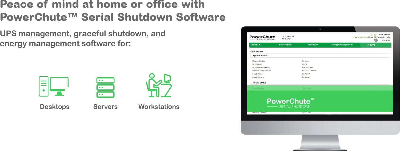 APC BE1050G2-GR. Topología UPS: En espera (Fuera de línea) o Standby (Offline), Capacidad de potencia de salida (VA): 1,05 kVA, Potencia de salida: 600 W. Tecnología de batería: Plomo-ácido, Capacidad de la batería: 9 Ah, Voltaje de la pila: 12 V. Factor de forma: Escritorio, Color del producto: Negro. Certificados de conformidad: CE, EAC. Ancho: 130 mm, Profundidad: 365 mm, Altura: 120 mm