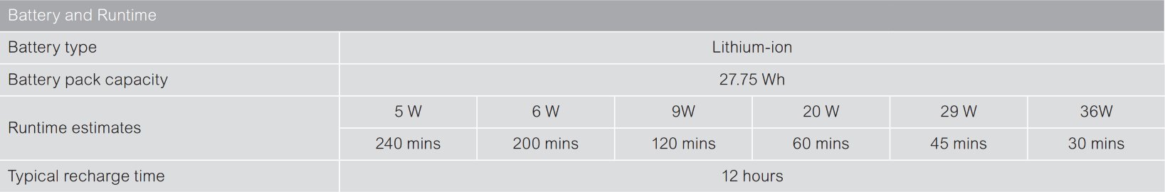 - Tiempo de recarga de la batería