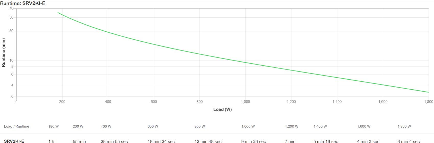 APC SRV2KI-E. Topología UPS: Doble conversión (en línea), Capacidad de potencia de salida (VA): 2 kVA, Potencia de salida: 1800 W. Tipo de salida AC: C13 acoplador, Conector: C19 acoplador. Tecnología de batería: Sealed Lead Acid (VRLA), Voltaje de la pila: 48 V, Tiempo de recarga de la batería: 4 h. Color del producto: Negro, Longitud de cable: 1,5 m, Tipo de visualizador: LCD. Ancho: 145 mm, Profundidad: 400 mm, Altura: 238 mm