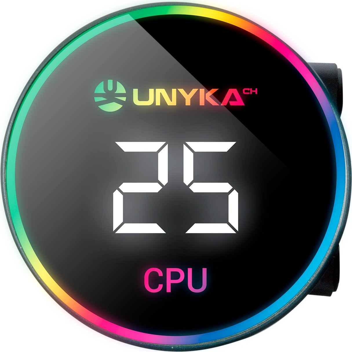 UNYKAch presenta su nueva refrigeración líquida AquaStorm 360, la solución perfecta para mantener los procesadores Intel y AMD en óptimas condiciones de temperatura. Con una bomba de alta calidad que alcanza los 2500 RPM, los usuarios podrán disfrutar de una refrigeración eficiente y silenciosa. Además, cuenta con un display que muestra la temperatura de la CPU en tiempo real, lo que permite a los usuarios tener un control absoluto sobre el rendimiento de su equipo.