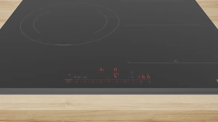 Bosch Serie 6 PVJ631HC1E. Color del producto: Negro, Tipo de instalación: Integrado, Anchura de los quemadores: 59.2 cm. Tipo de control: Tocar, Control de posición: Parte superior delantera. Carga conectada (eléctrica): 7400 W, Voltaje de entrada AC: 220 - 240 V, Frecuencia de entrada AC: 50/60 Hz. Tecnologías Bosch (cocción): Home Connect, PowerBoost. Ancho: 592 mm, Profundidad: 522 mm, Altura: 51 mm